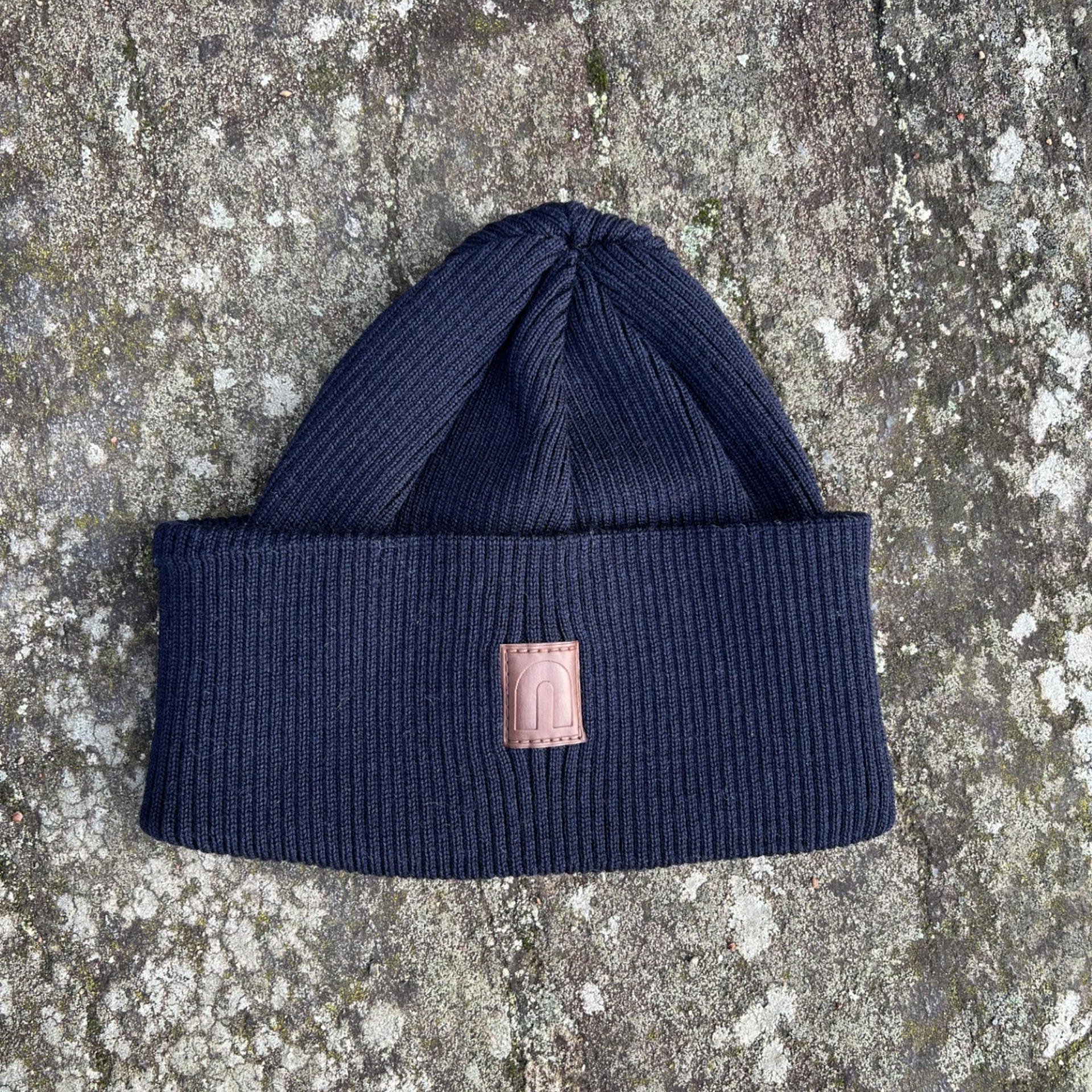 Merinovillapipo matalampi malli, nahkamerkillä /tummansininen