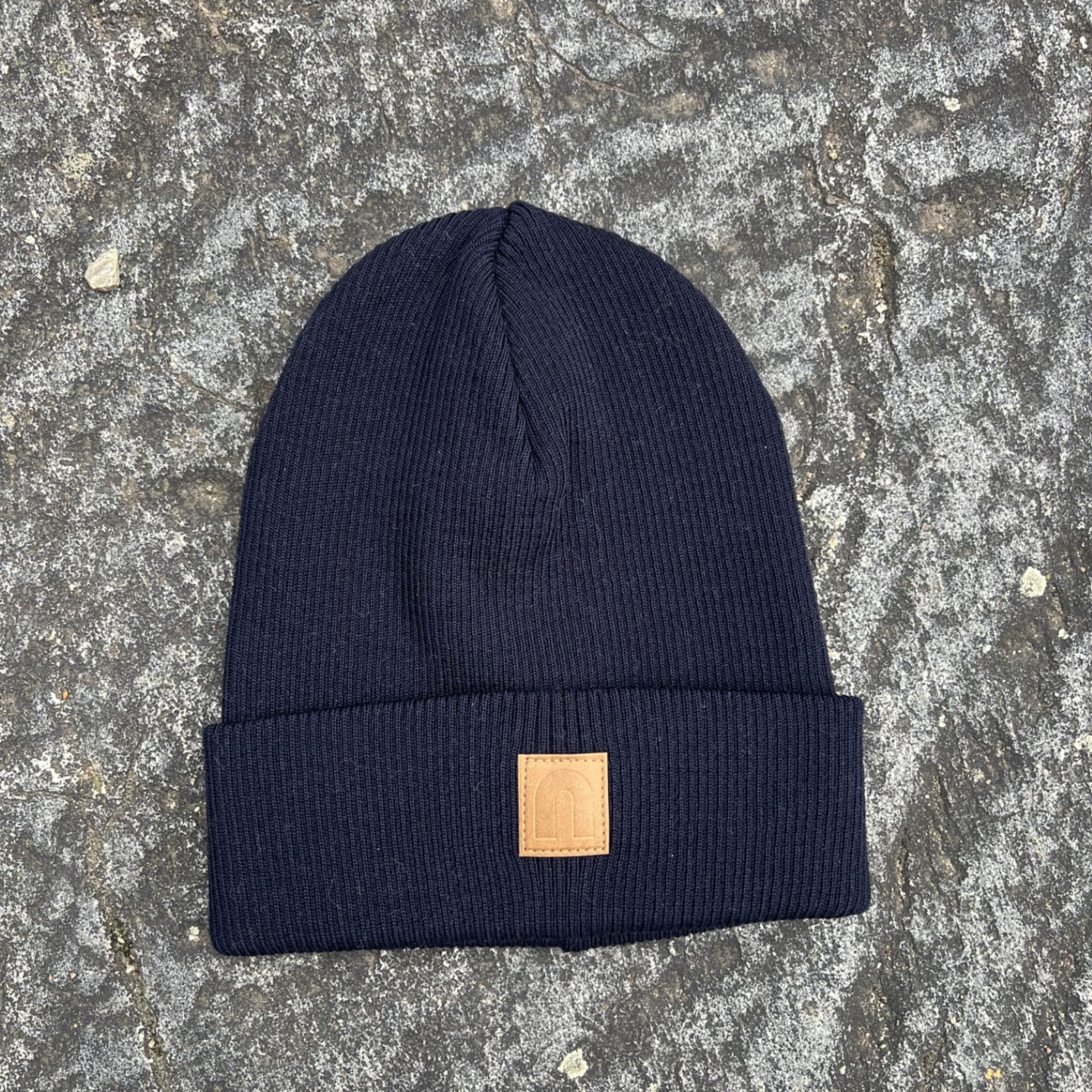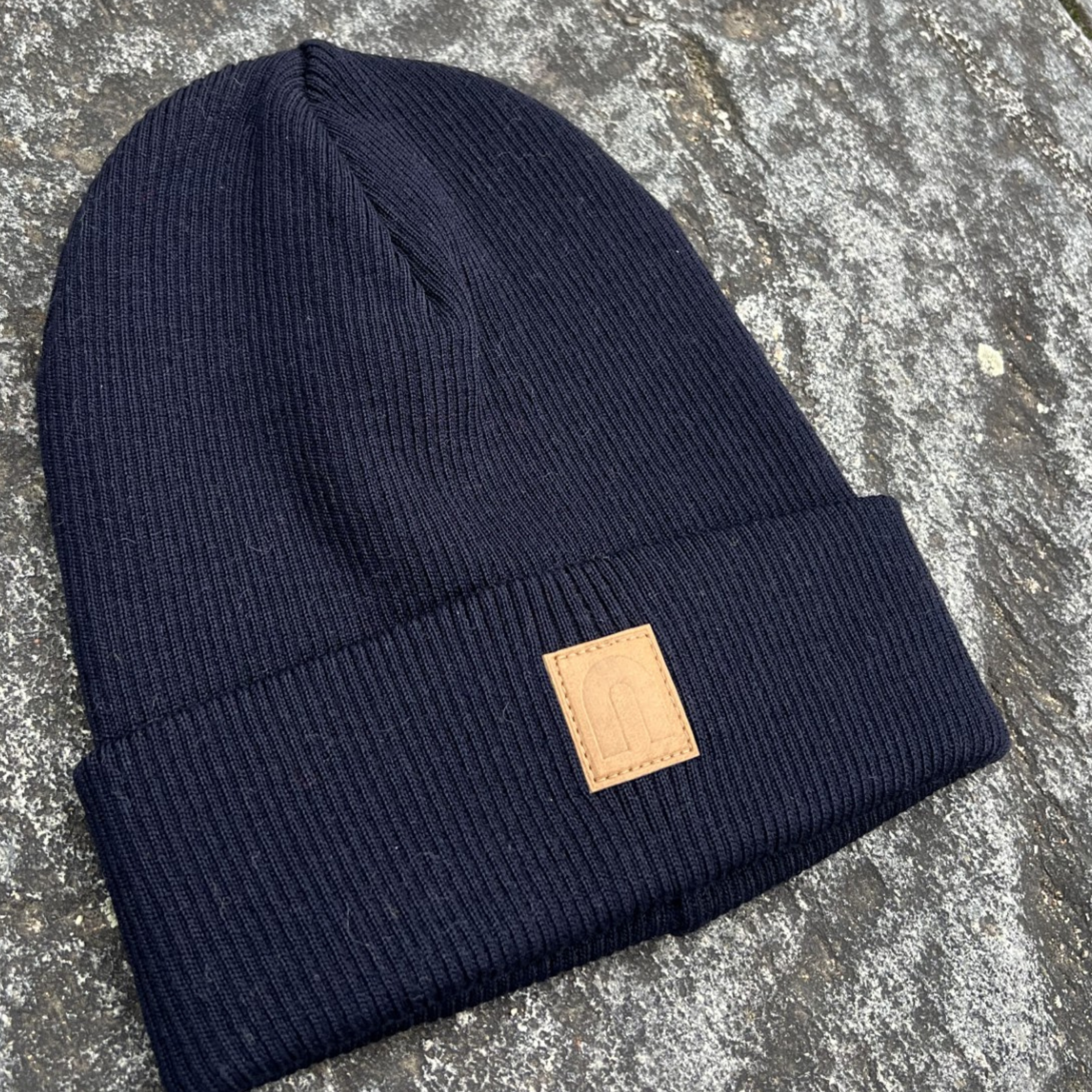 Merinovillapipo nahkamerkillä /tummansininen
