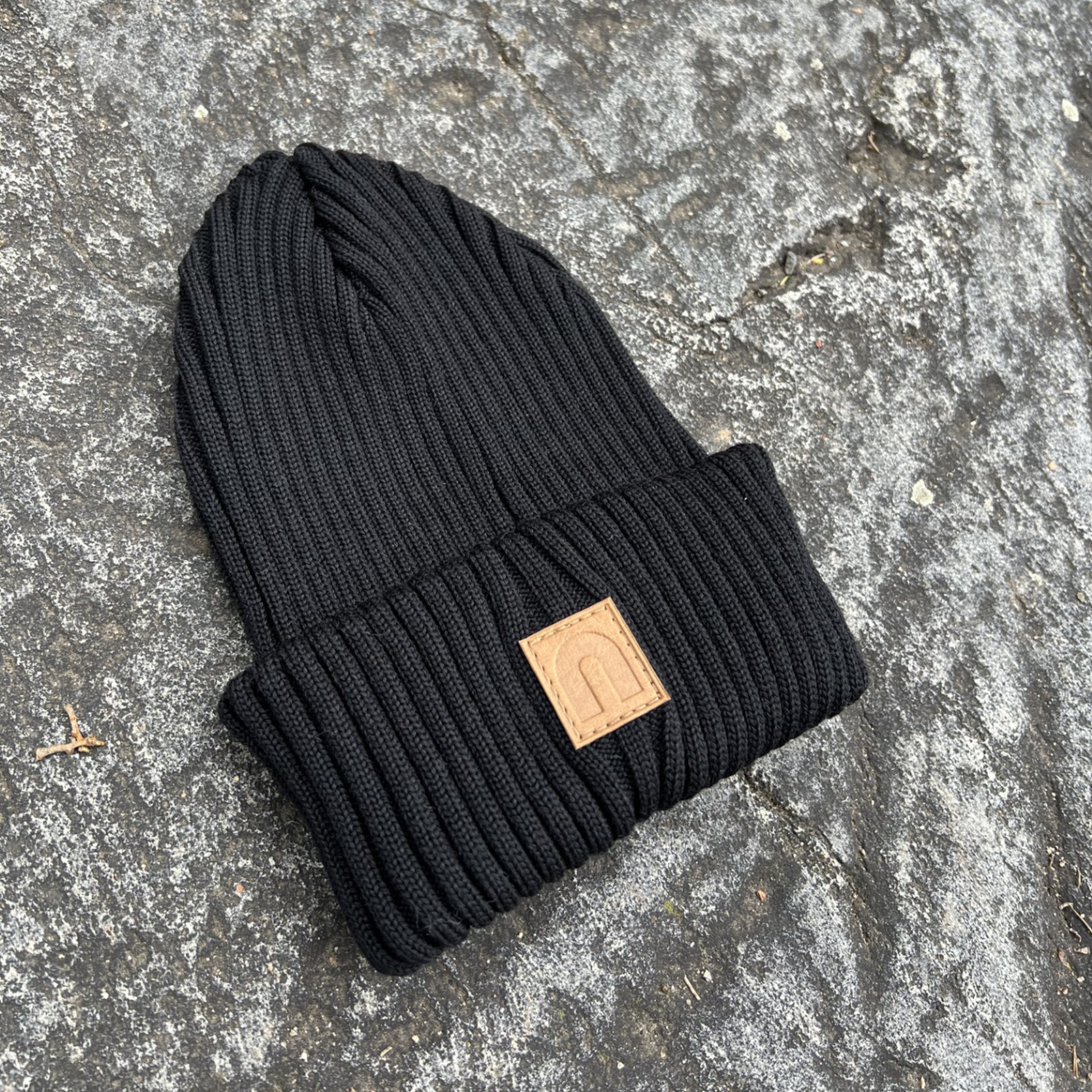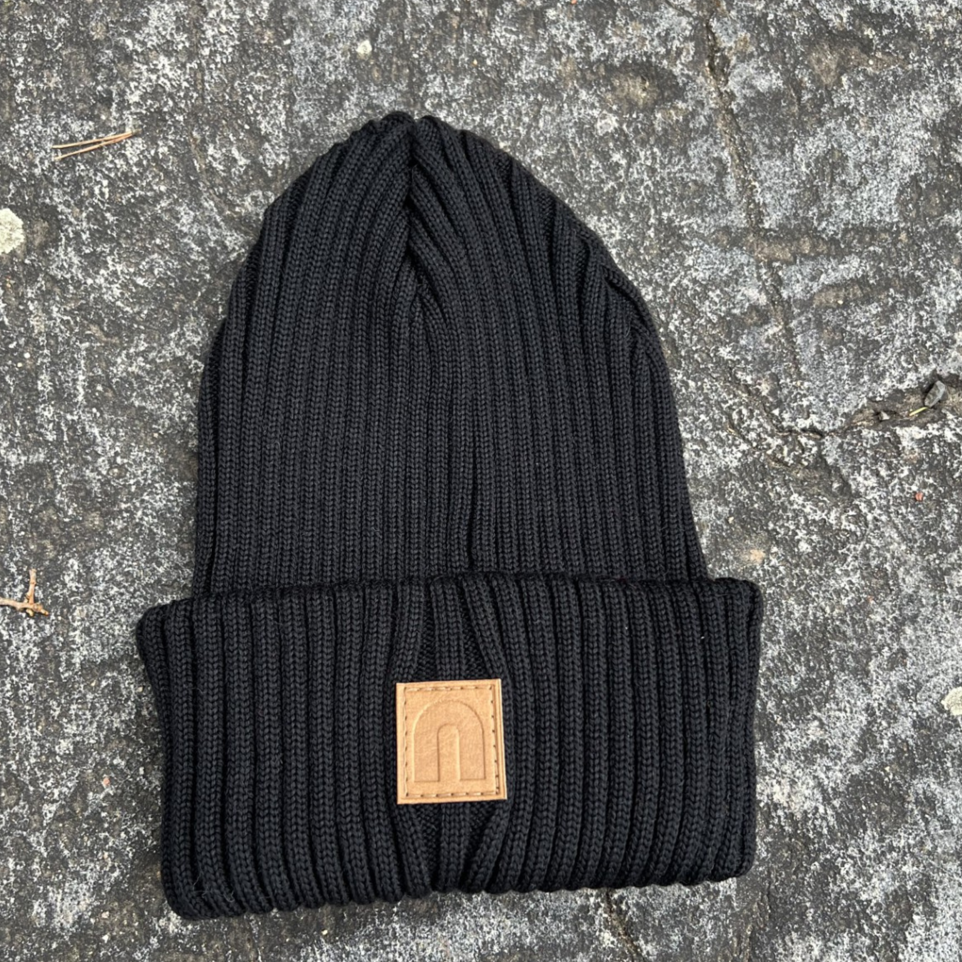 Merinovillapipo/ nahkamerkki edessä/ musta