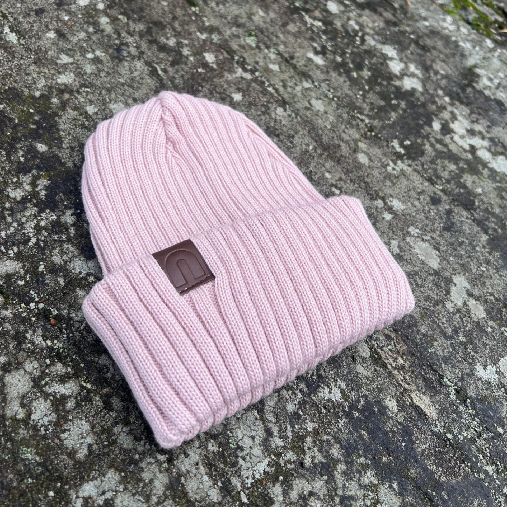 Merinovillapipo ruskealla nahkamerkillä /roosa