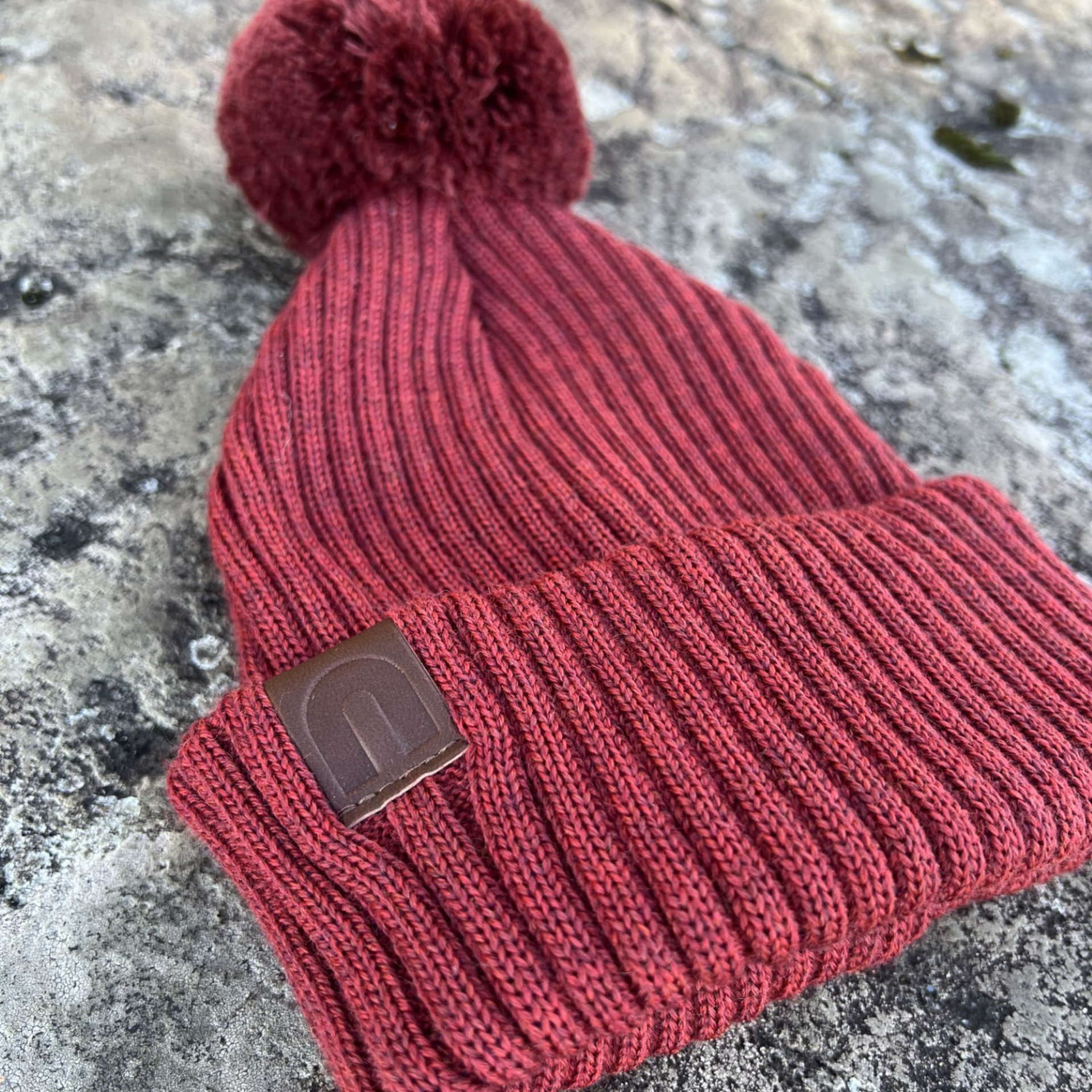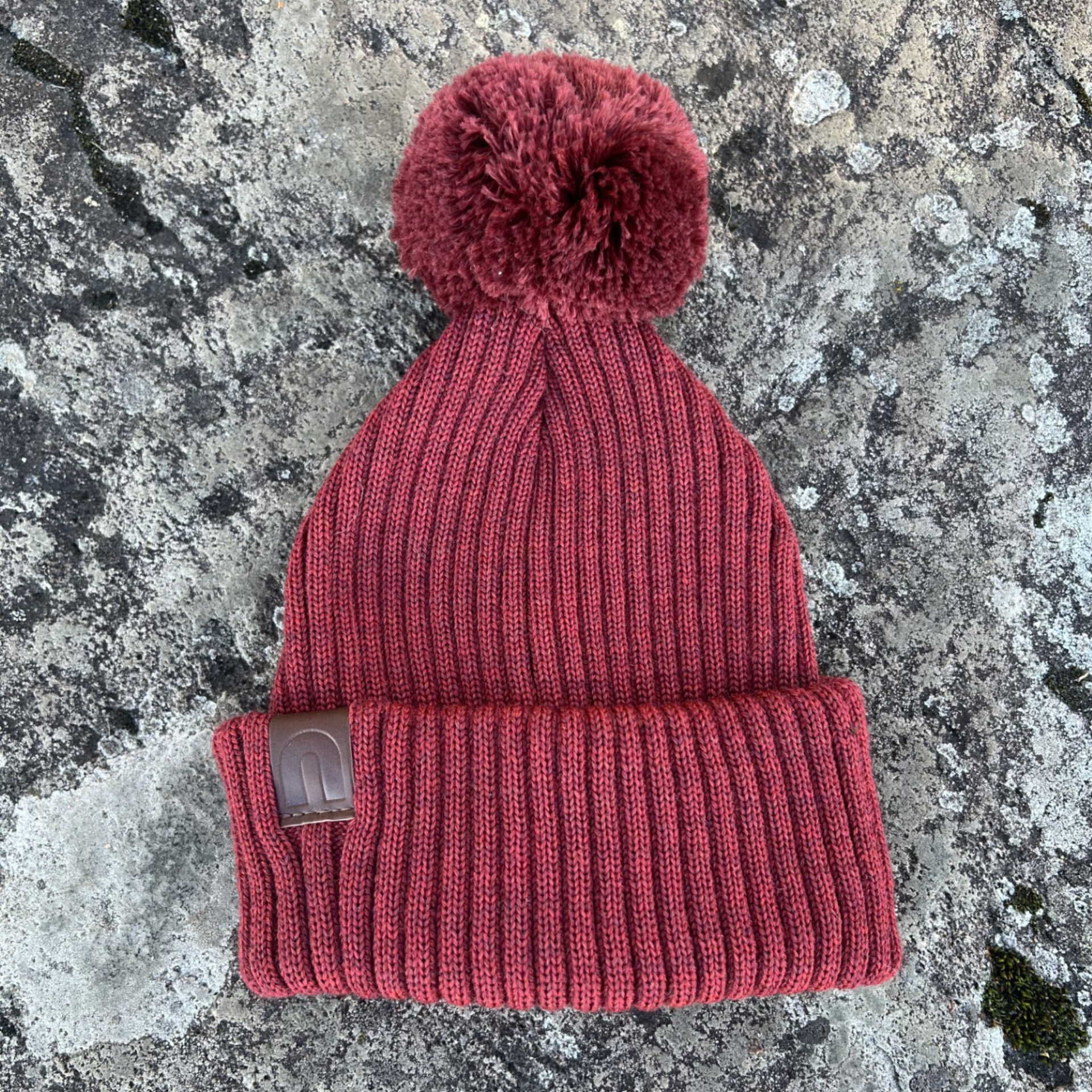 Merinovillapipo tupsulla/ tumma viininpunainen